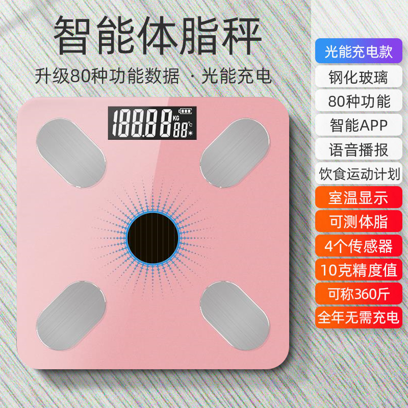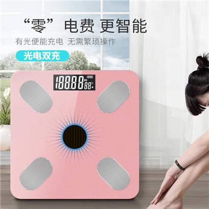 【超值单品】多功能体脂称USB充电太阳能充电两用【钢化玻璃/玫瑰金】 |