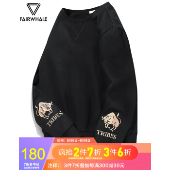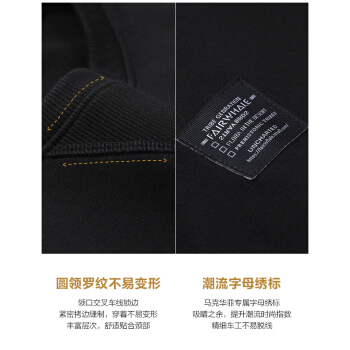 马克华菲卫衣男潮秋季新款男装港风刺绣上衣圆领男士外套春秋 黑色 175/92A/L |
