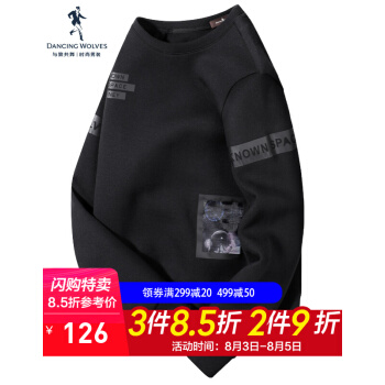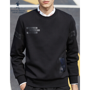 与狼共舞卫衣男秋季新款潮流暗纹男装外套韩版圆领印花长袖T恤6615 黑色 175/92A/XL |