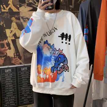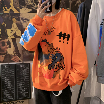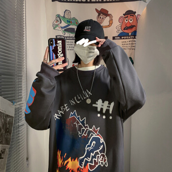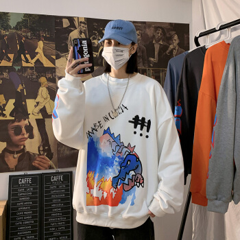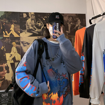 潮至 卫衣男圆领春秋季新款韩版潮流男士长袖T恤春装上衣大码外衣 牛仔蓝 S |