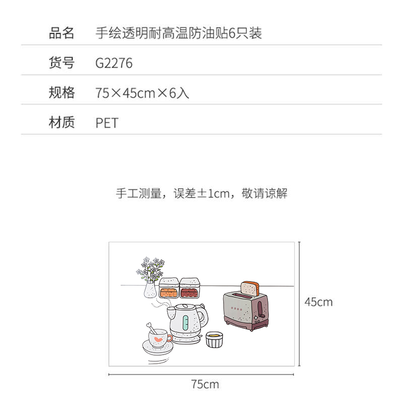手绘透明耐高温防油贴6只装【PET/图片色】 |