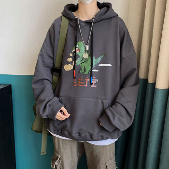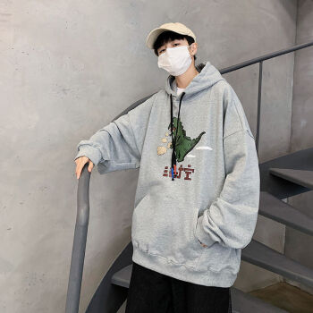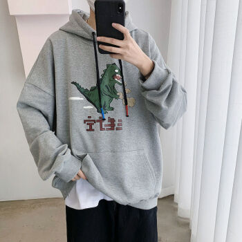 潮至 卫衣男春秋季男士连帽卫衣男宽松长袖T恤男潮流学生运动套头衫上衣服外套男 浅灰色 M |