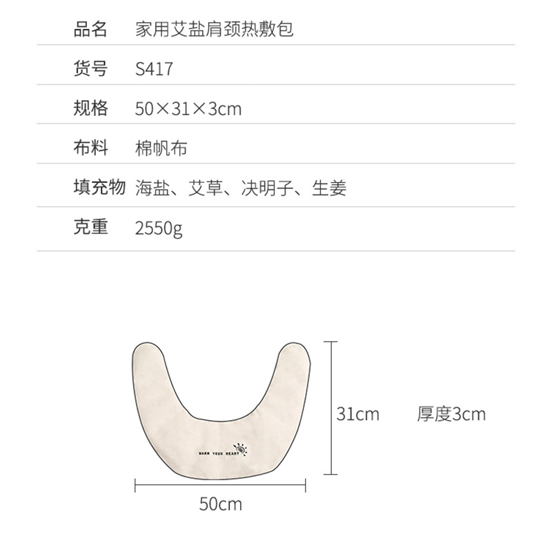 家用艾盐肩椎热敷包【布料:100%棉纤维 填充物:海盐 艾草 决明子 生姜/图片色】 |