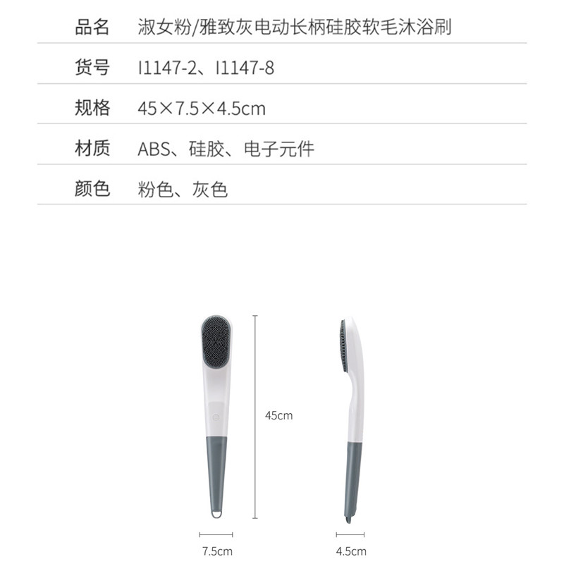 淑女粉电动长柄硅胶软毛沐浴刷【ABS 硅胶 电子元件/粉色】 |