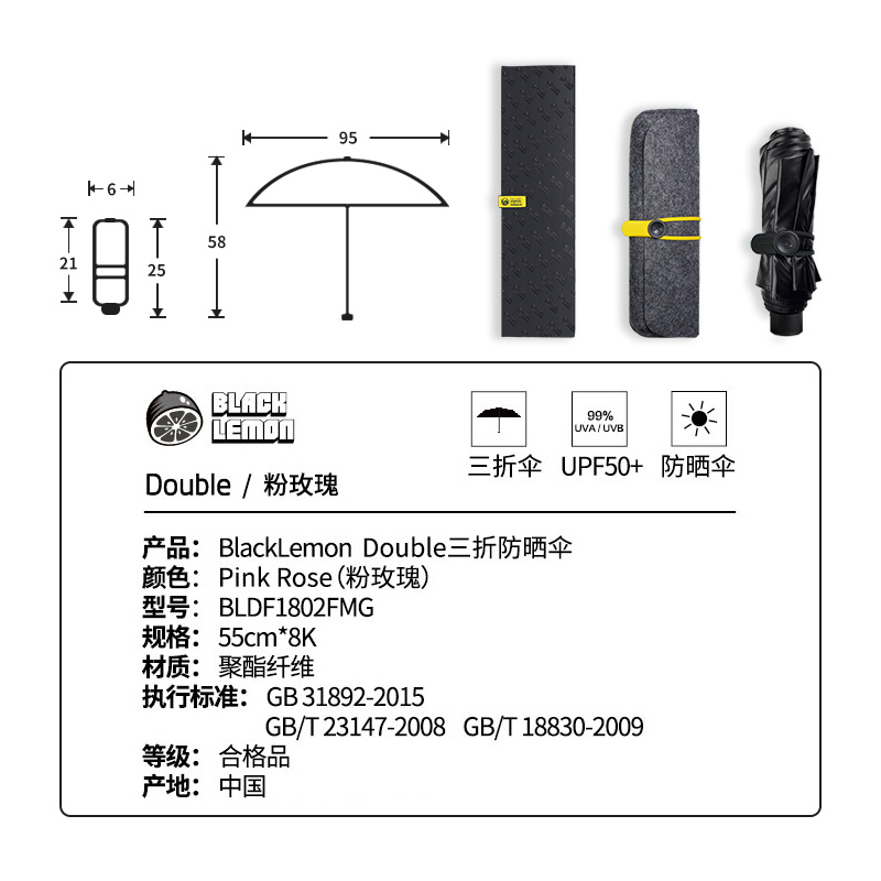 双层防晒防紫外线太阳伞【聚酯纤维/粉玫瑰】 |