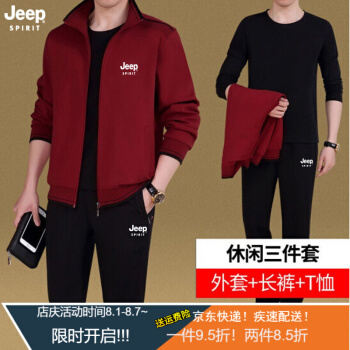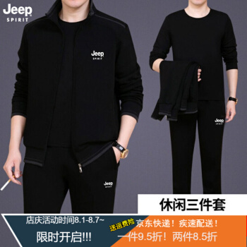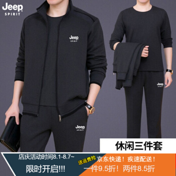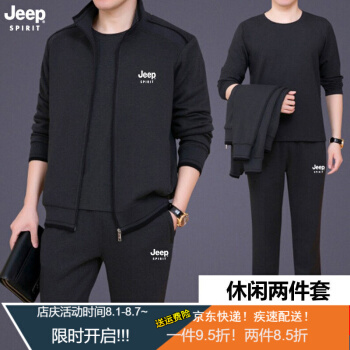 Jeep(吉普)中老年套装男春秋款夏款短袖T恤短裤男爸爸装休闲套装中年运动服装男秋季三件套 8306深灰两件套 XL (建议体重130-145斤) |