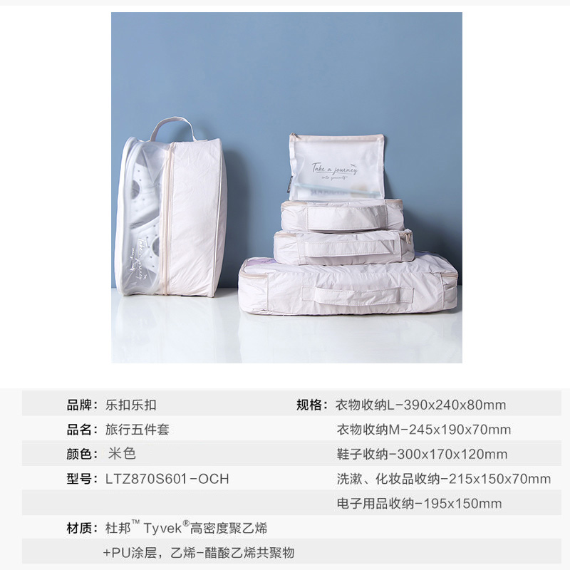旅行收纳套装五件套防水洗漱包衣物整理【高密度聚乙烯/米色】 |