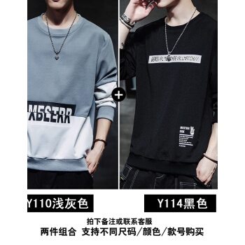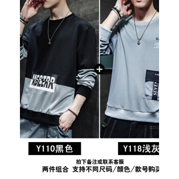 慕林初客卫衣男2018春秋季韩版学生圆领套头男士卫衣夏青年加大码长袖T恤打底上衣衣服 Y112黑色 XL |