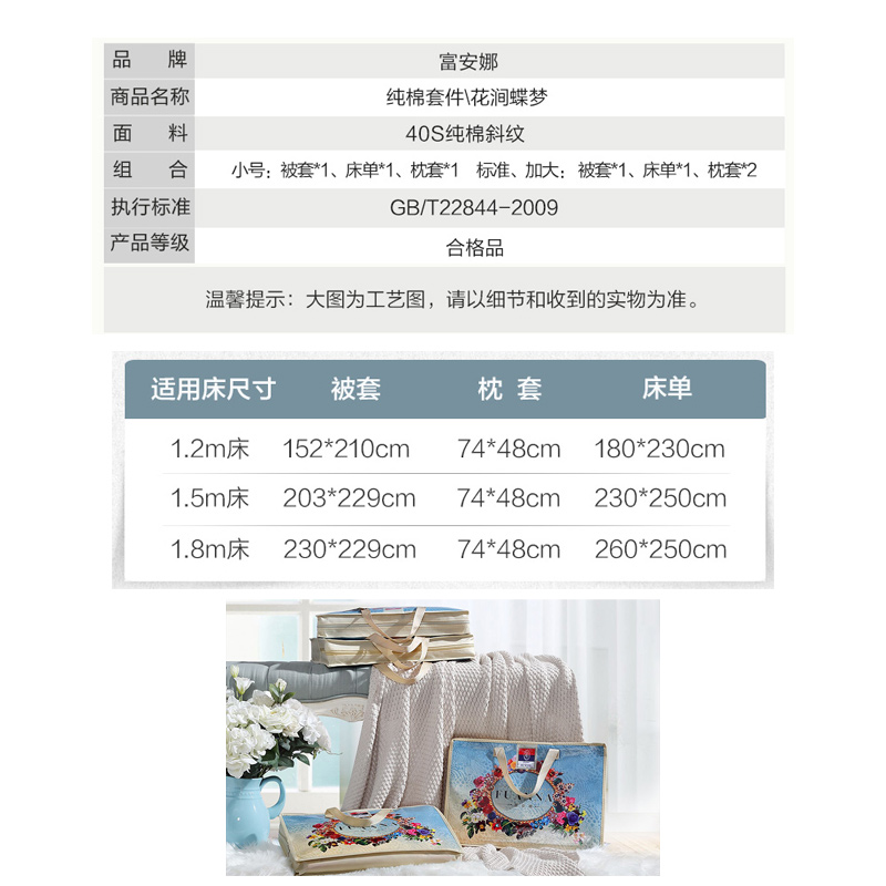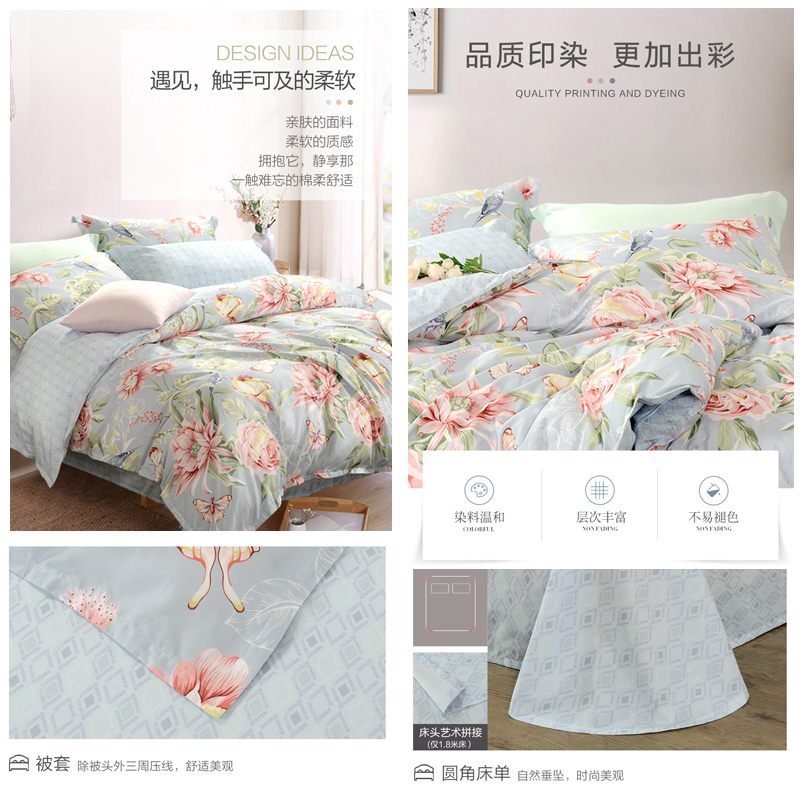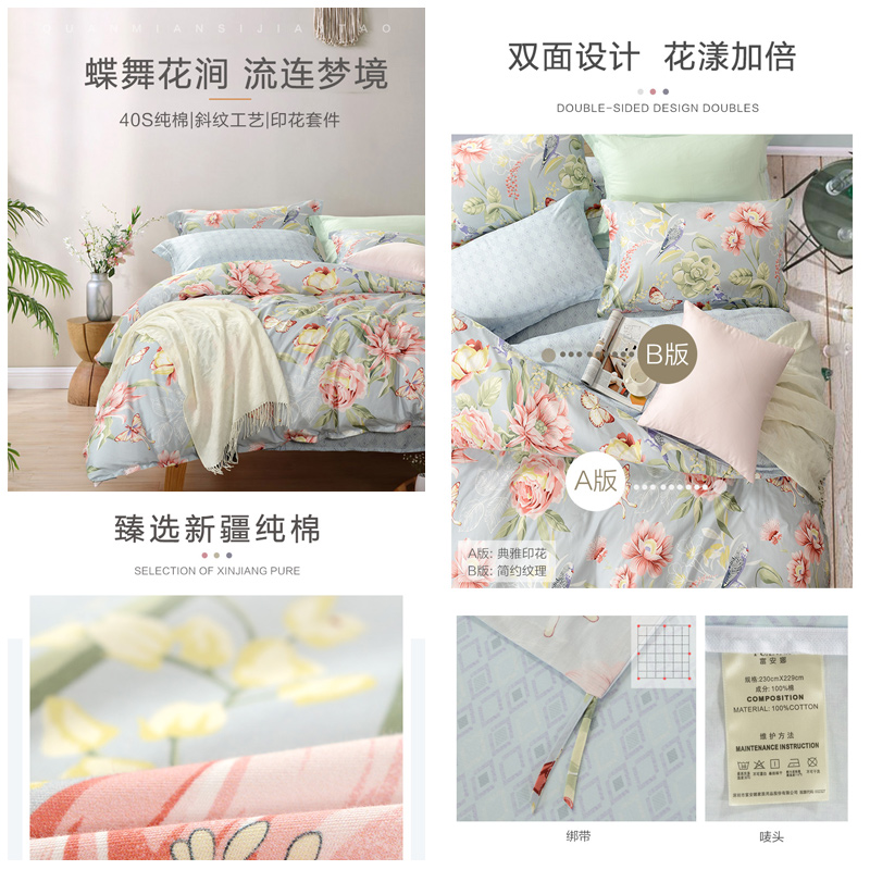 花涧蝶梦 床单三件套(被套1件床单1件枕套1件)(适合1.2米床)【纯棉/蓝】 |