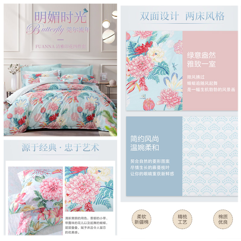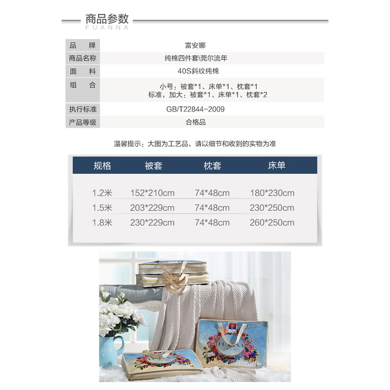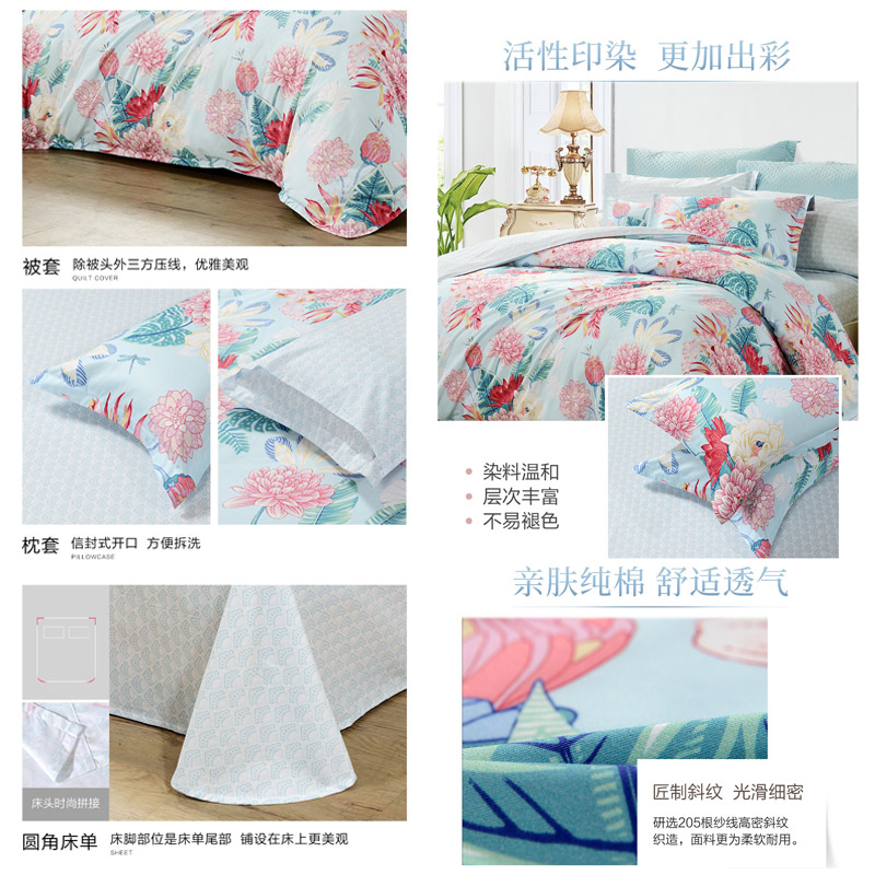 莞尔流年 床单三件套(被套1件床单1件枕套1件)(适合1.2米床)【纯棉/蓝】 |