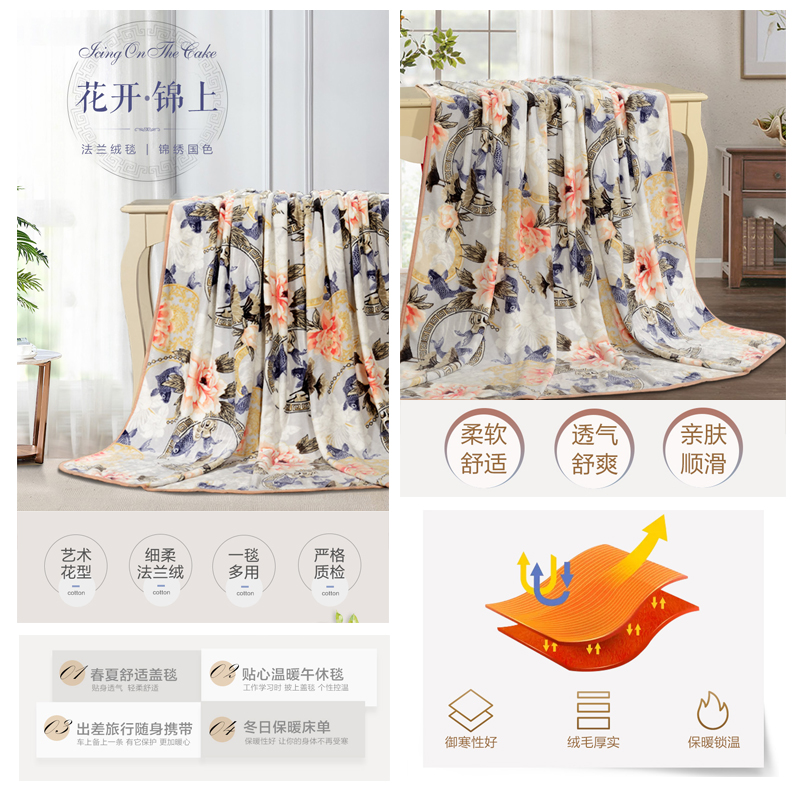 锦绣国色 法兰绒毯(毯子1件)【聚酯纤维/橙】 |