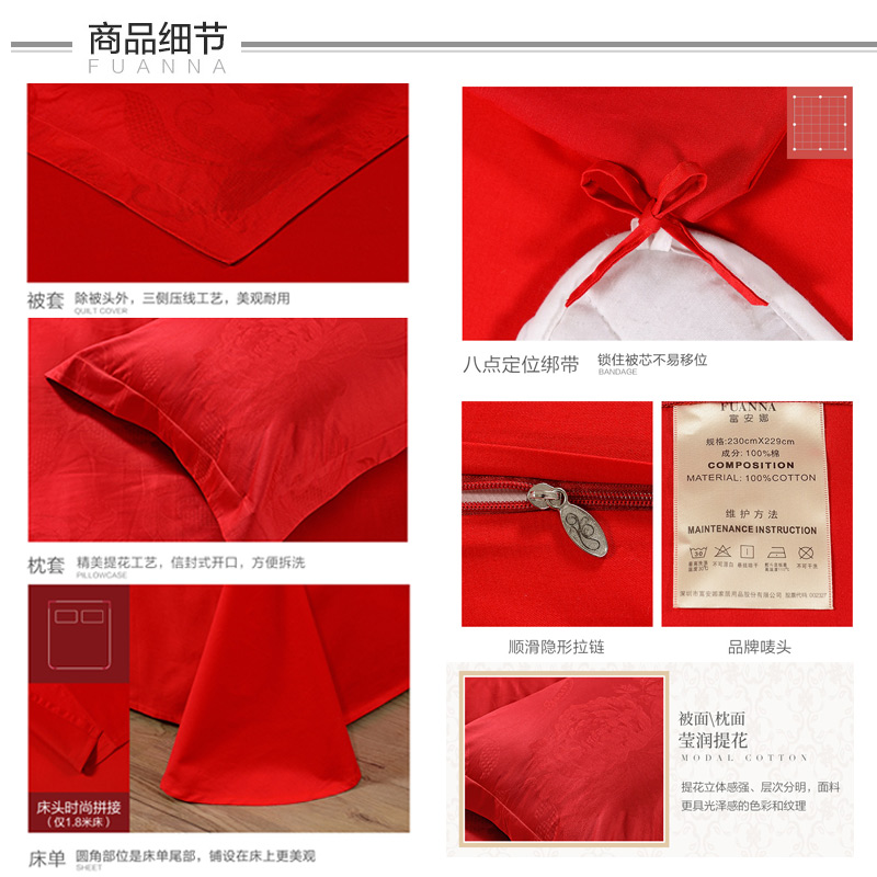 浪漫密西比 床单四件套(被套1件床单1件枕套2件)(适合1.8米床)【纯棉提花/红】 |