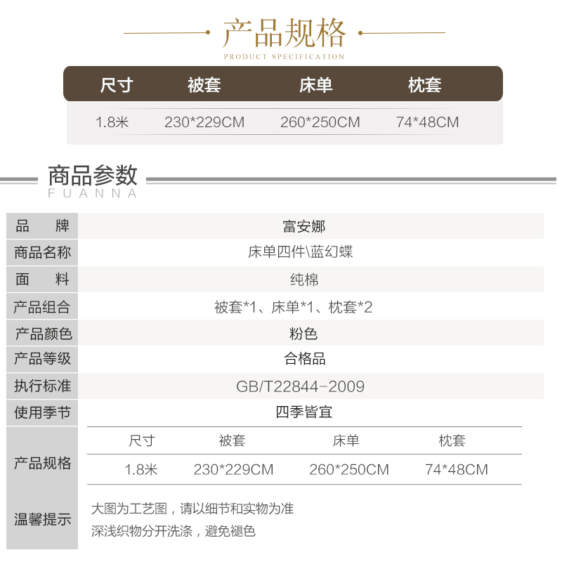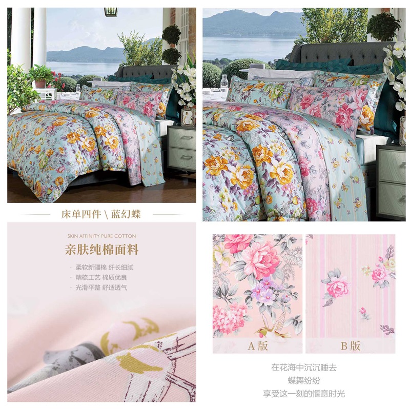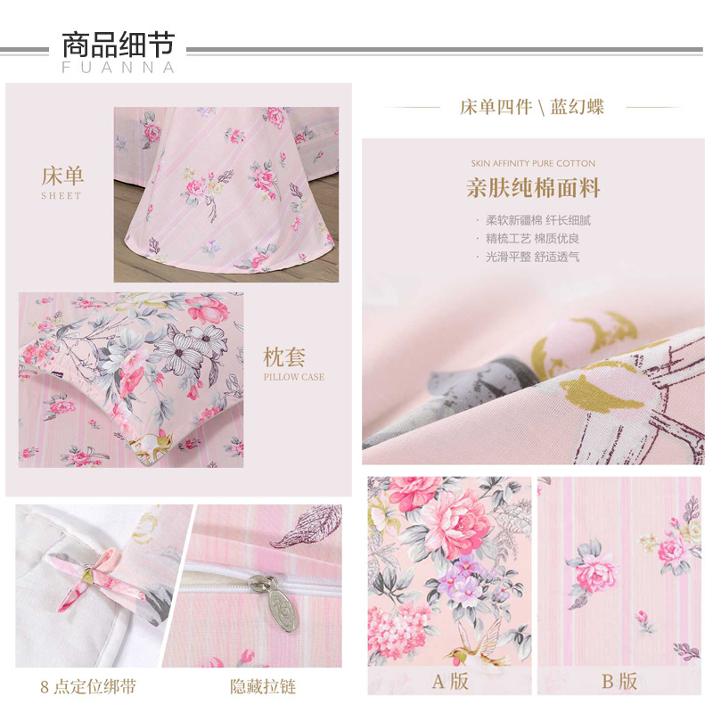 蓝幻蝶 床单四件套(被套1件床单1件枕套2件)(适合1.8米床)【纯棉/粉】 |