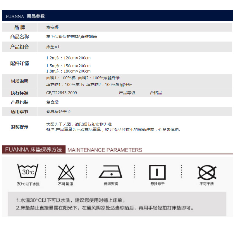 羊毛保暖床垫 橡筋款(床垫1件)(适合1.2米床)【面料:聚酯纤维;填充:羊毛+聚酯纤维/米黄】 |
