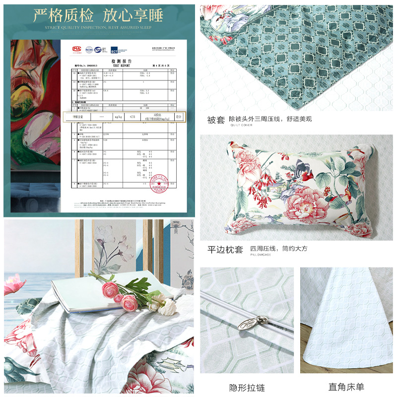 琉璃月 床单四件套(被套1件床单1件枕套2件)(适合1.8米床【纯棉/深绿】 |