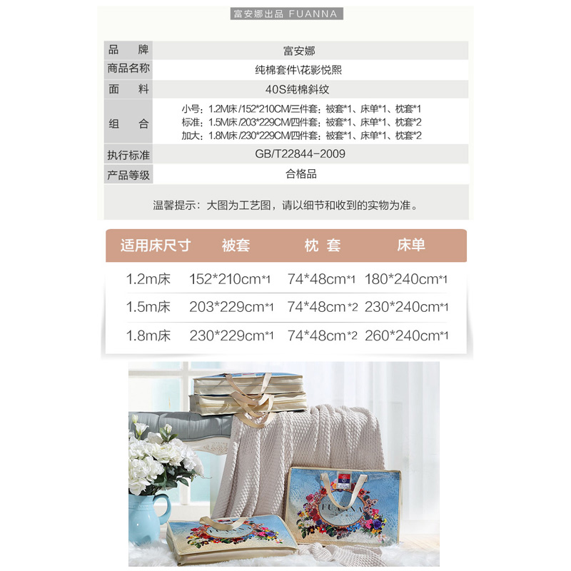 花影月熙 床单三件套(被套1件床单1件枕套1件)(适合1.2米床)【纯棉/黄】 |