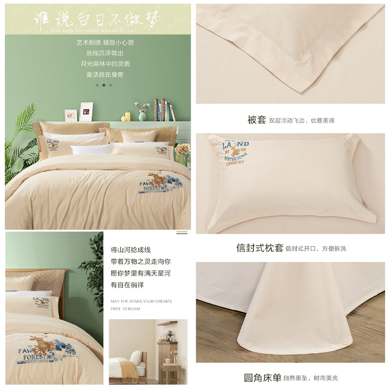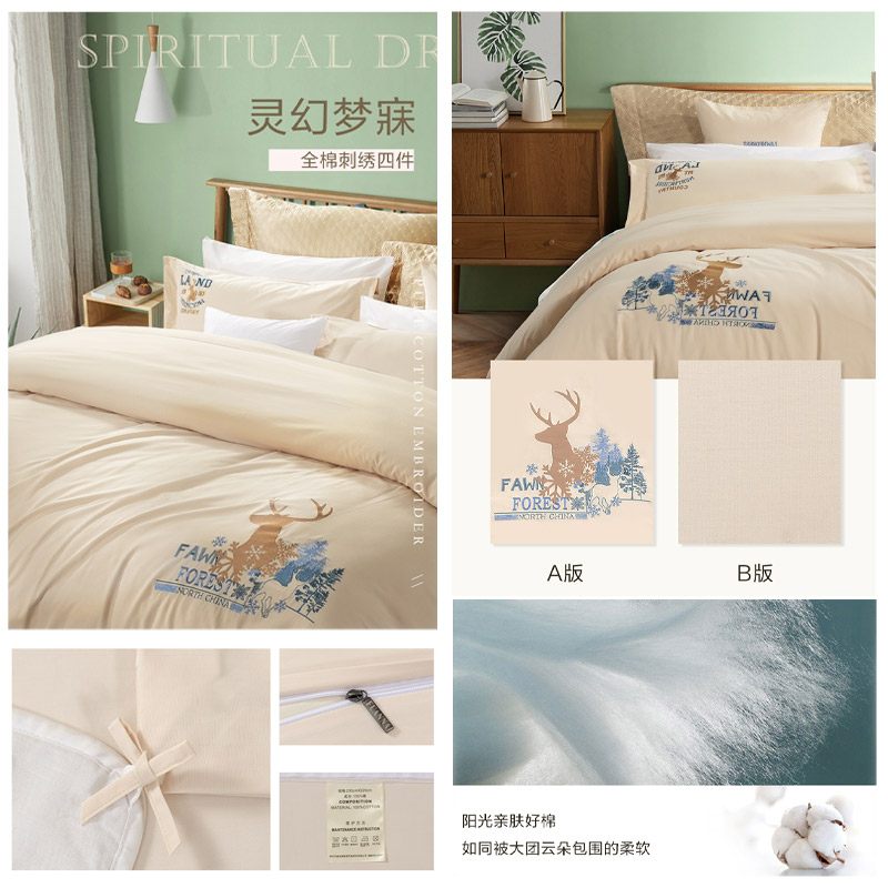 白鹿青崖 床单四件套(被套1件床单1件枕套2件)(适合1.5米床)【纯棉/图片色】 |