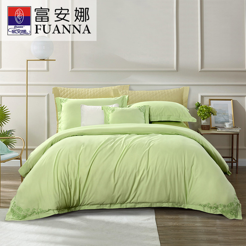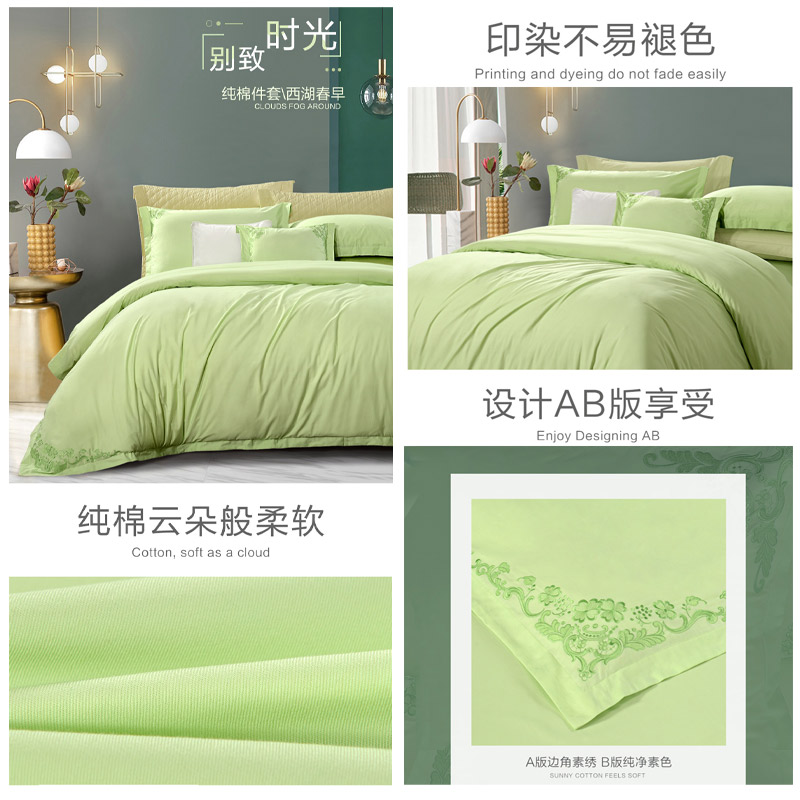 西湖早春 床单四件套(被套1件床单1件枕套2件)(适合1.5米床)【纯棉/绿】 |