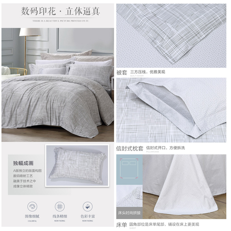 一曦时光 床单四件套(被套1件床单1件枕套2件)(适合1.8米床)【纯棉/蓝】 |