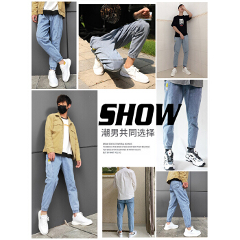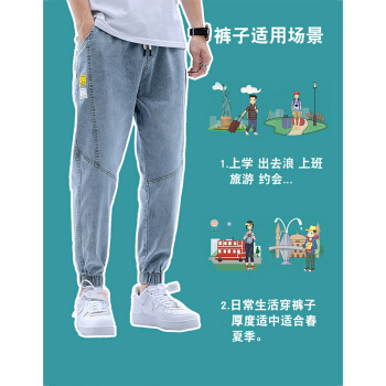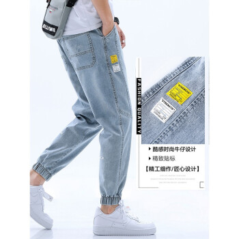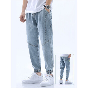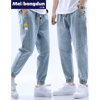 美邦顿 牛仔裤男 春夏新品时尚潮流百搭休闲裤男宽松透气弹力束脚裤小脚裤九分裤长裤男装裤子 浅蓝 XL |