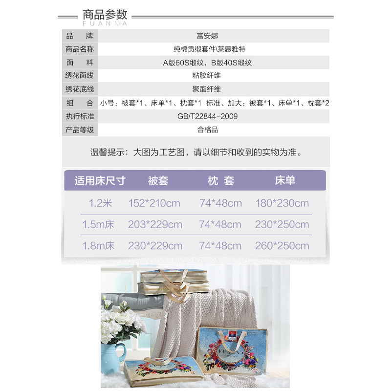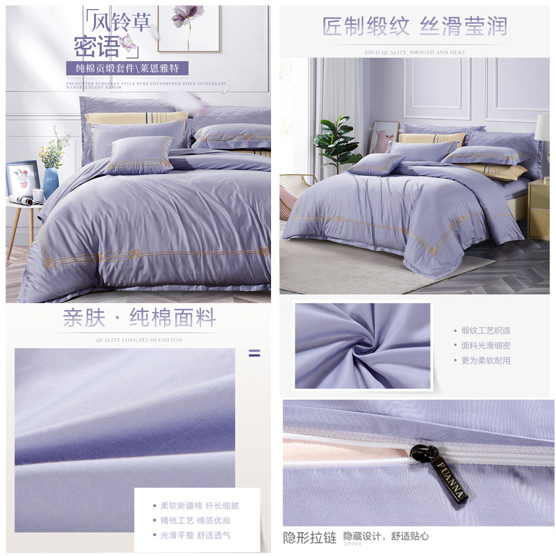 莱恩雅特 床单四件套(被套1件床单1件枕套2件)(适合1.5米床)【A版:纯棉缎纹;B版:纯棉/浅紫】 |