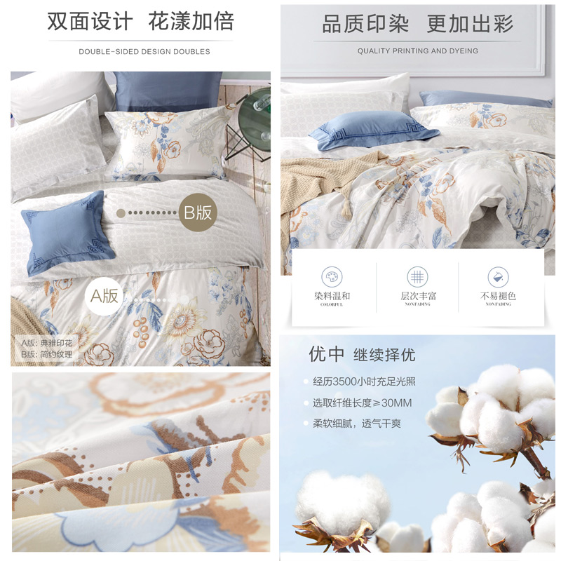 晓露含香 床单四件套(被套1件床单1件枕套2件)(适合1.5米床)【纯棉/灰】 |