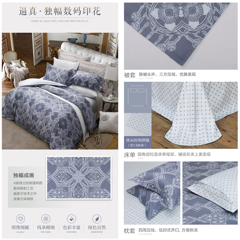 克里蓝调 床单四件套(被套1件床单1件枕套2件)(适合1.5米床)【长绒棉/蓝】 |