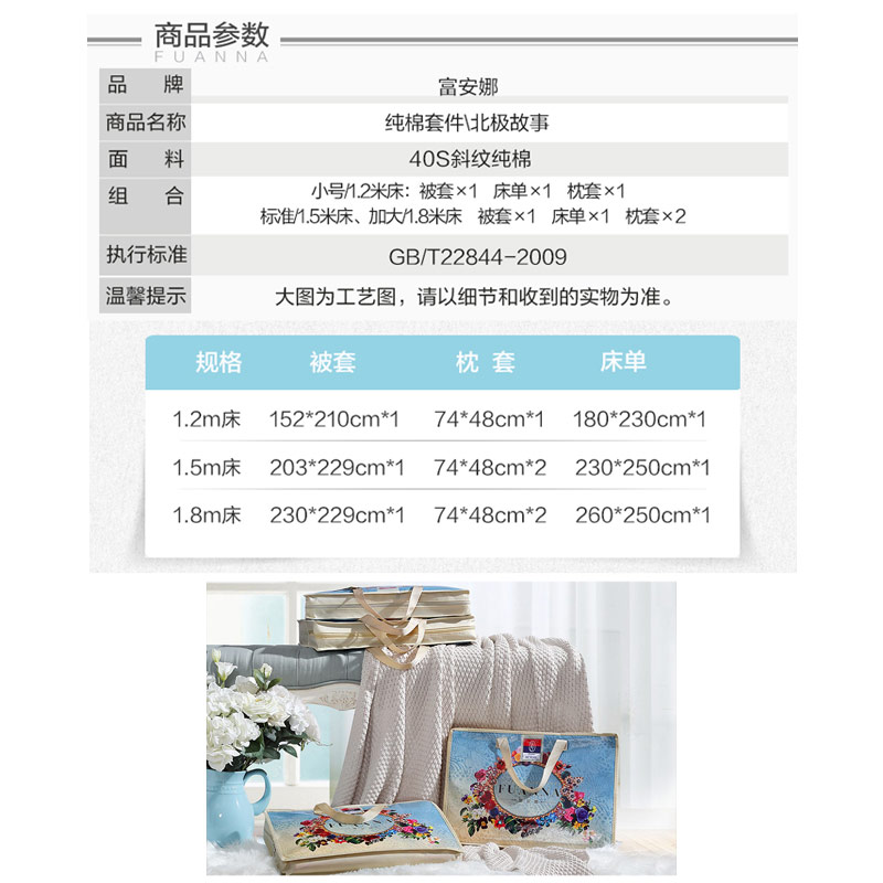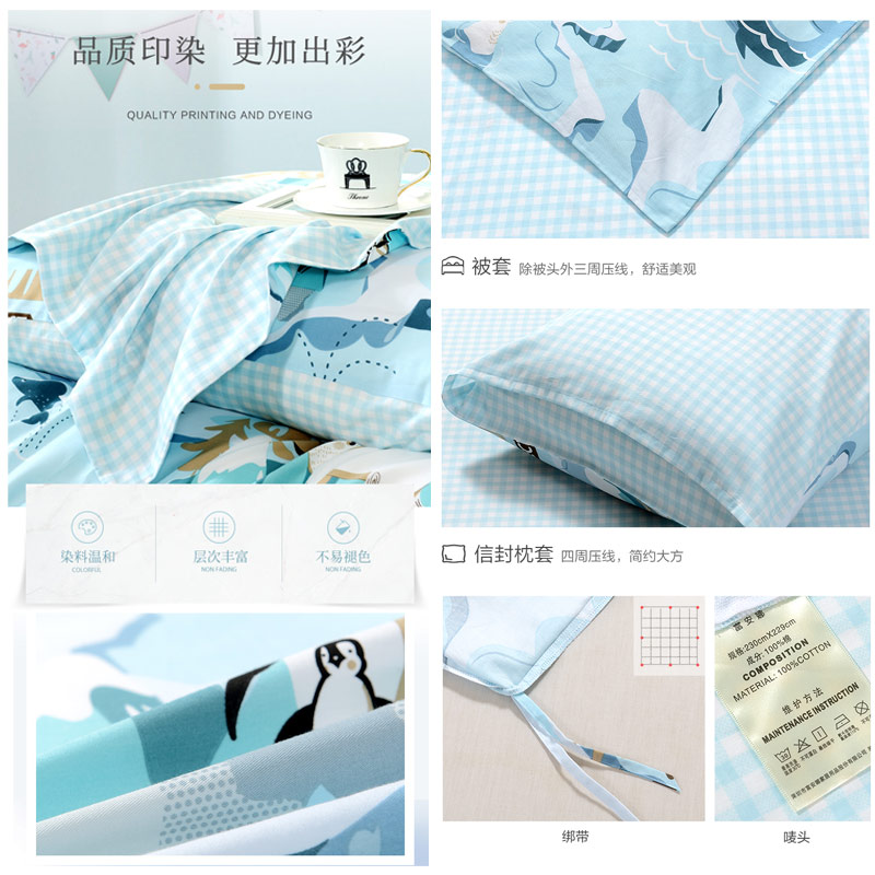 北极故事 床单四件套(被套1件床单1件枕套2件)(适合1.5米床)【纯棉/蓝】 |