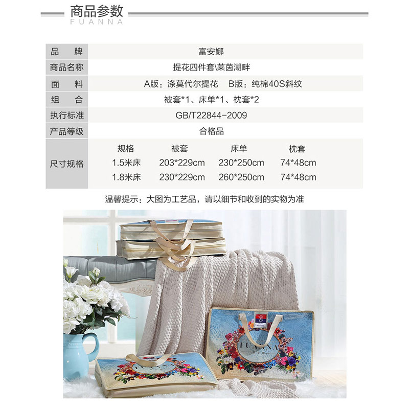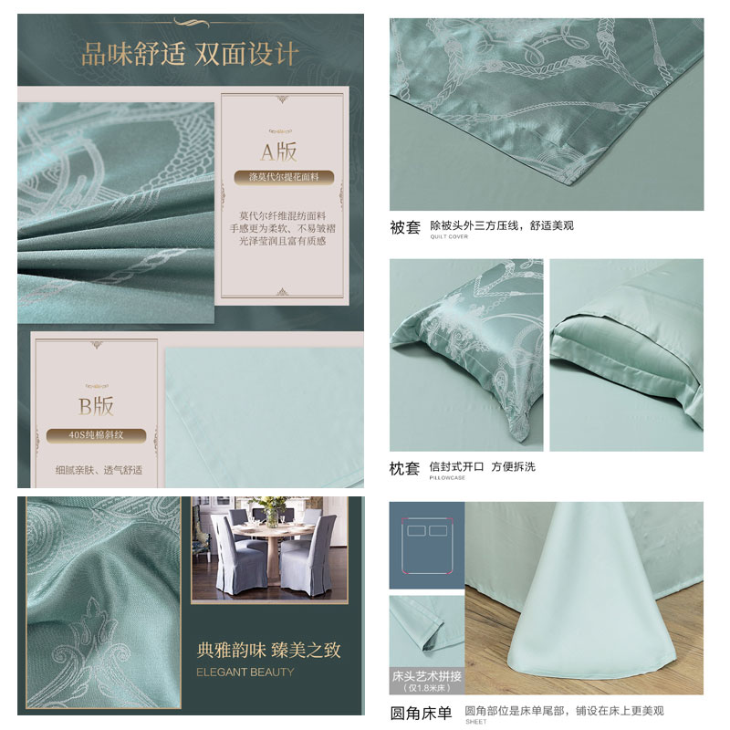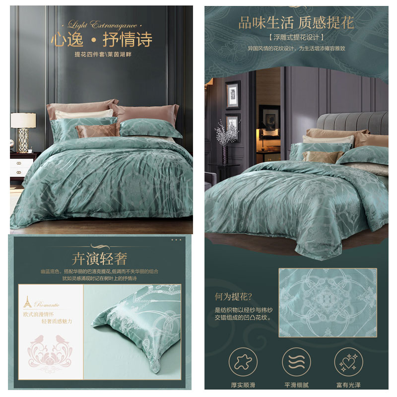 莱茵湖畔 床单四件套(被套1件床单1件枕套2件)(适合1.5米床)【A版:涤莫代尔提花;B版:纯棉/浅绿】 |