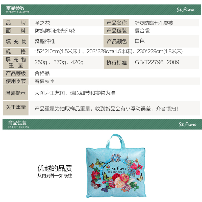 舒爽防螨七孔夏被(夏被1件)(适合1.8米床)【面料:聚酯纤维;填充:聚酯纤维/白】 |