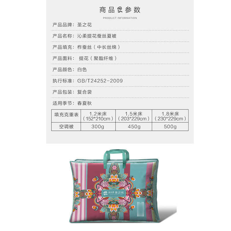 沁柔提花蚕丝夏被(被子1件)(适合1.2米床)【面料:聚酯纤维;填充:柞蚕丝(中长丝绵)/白】 |