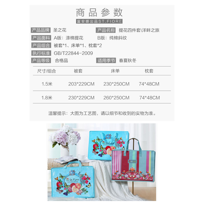洋畔之旅 床单四件套(被套1件床单1件枕套2件)(适合1.5米床)【A版:涤棉提花;B版:纯棉/蓝】 |
