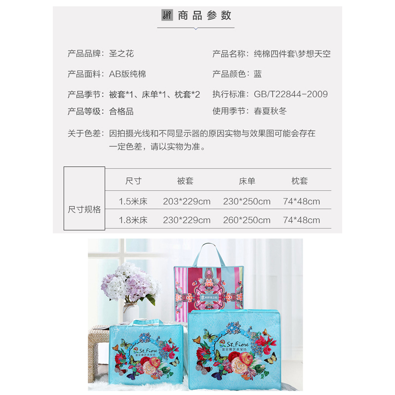 梦想天空 床单四件套(被套1件床单1件枕套2件)(适合1.8米床)【纯棉/蓝】 |