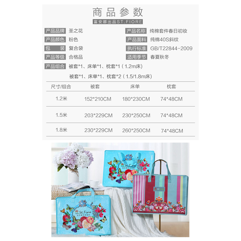 春日初妆 四件套(被套1件床单1件枕套2件)(适合1.5米床)床单【纯棉/粉】 |