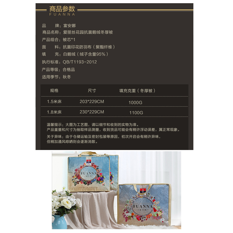 爱丽丝花园抗菌鹅绒冬厚被(被子1件)(适合1.5米床)【面料:聚酯纤维;填充:白鹅绒(绒子含量95%)/粉】 |
