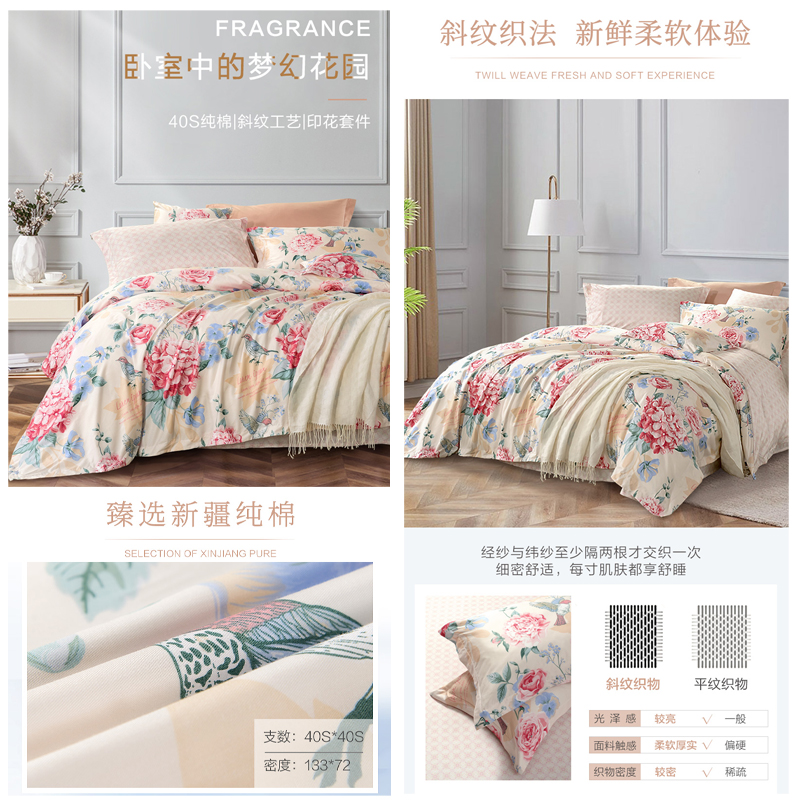 花影悦熙 床单四件套(被套1件床单1件枕套2件)(适合1.5米床)【纯棉/黄】 |
