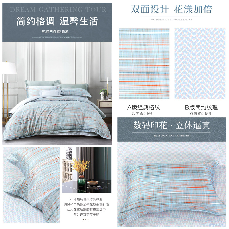 简慕 床单四件套(被套1件床单1件枕套2件)(适合1.5米床)【纯棉缎纹/蓝】 |