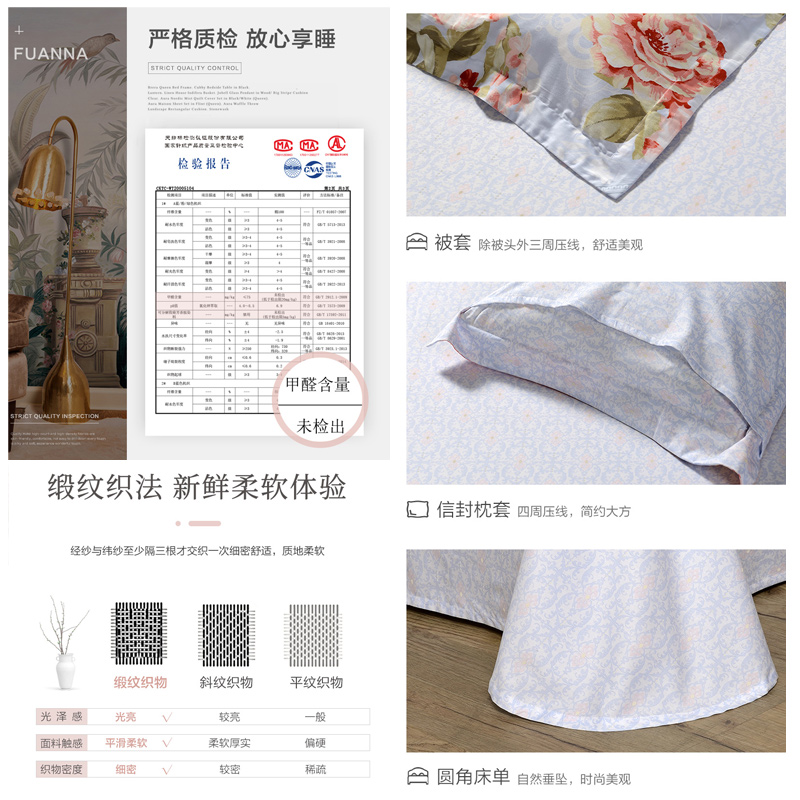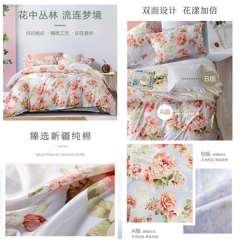 花语仙踪 床单四件套(被套1件床单1件枕套2件)(适合1.8米床)【纯棉缎纹/蓝】 |