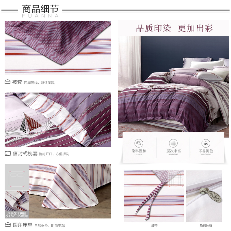 航海世界 床单四件套(被套1件床单1件枕套2件)(适合1.5米床)【纯棉/紫】 |