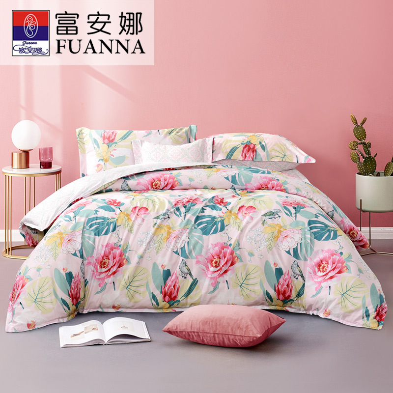 国色嫣然 床单三件套(被套1件床单1件枕套1件)(适合1.2米床)【纯棉/粉】 |