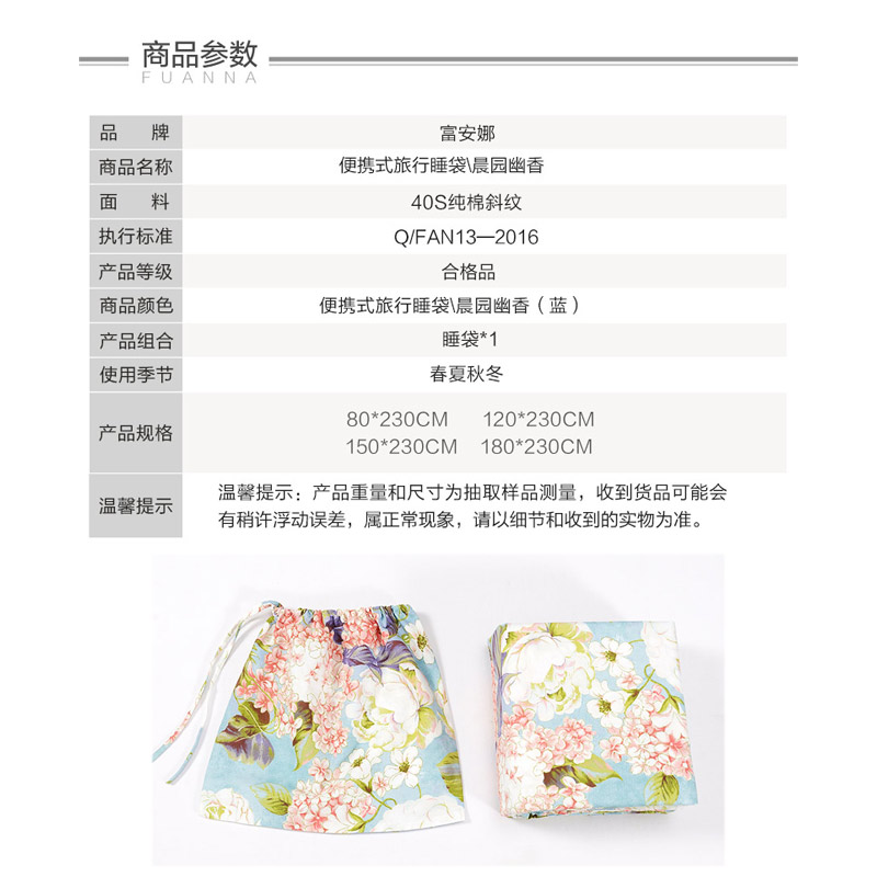 晨园幽香便携式旅行睡袋(睡袋1个)【纯棉/蓝】 |