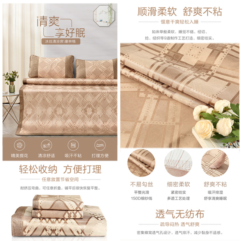 塞林格 冰丝清凉席两件套(凉席1件枕套1件)(适合1.2米床)【聚酯纤维+纤维素材料/咖啡】 |