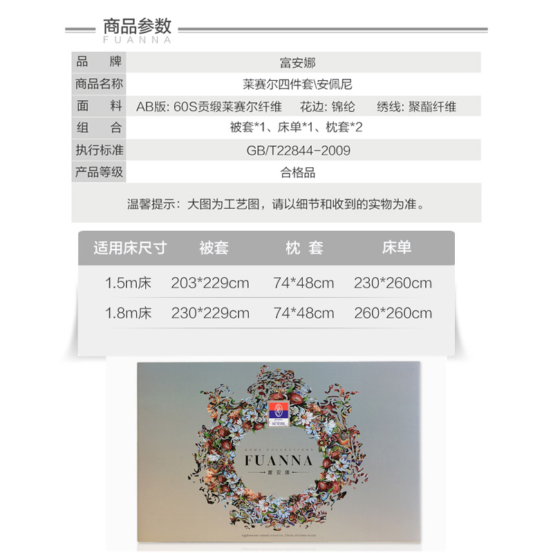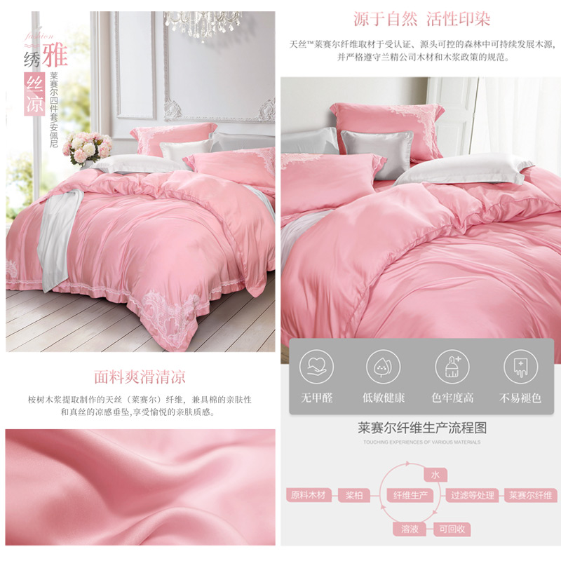 安佩尼 床单四件套(被套1件床单1件枕套2件)(适合1.8米床)【莱赛尔纤维/粉】 |