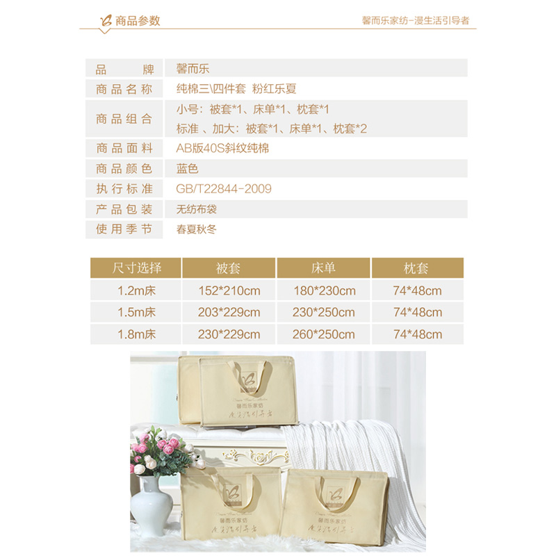粉红乐夏 床单四件套(被套1件床单1件枕套2件)(适合1.8米床)【纯棉/蓝】 |