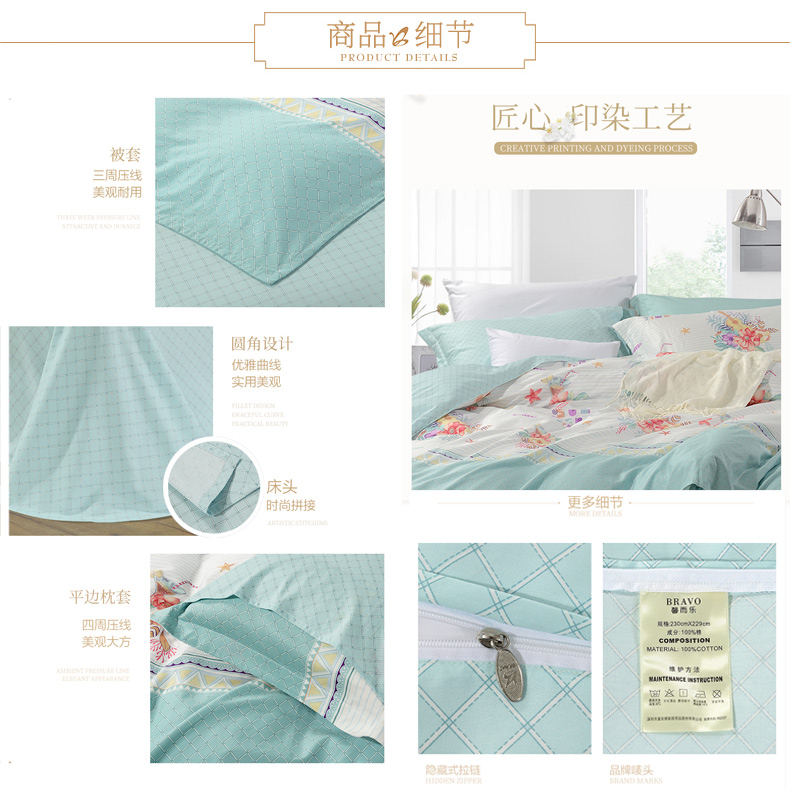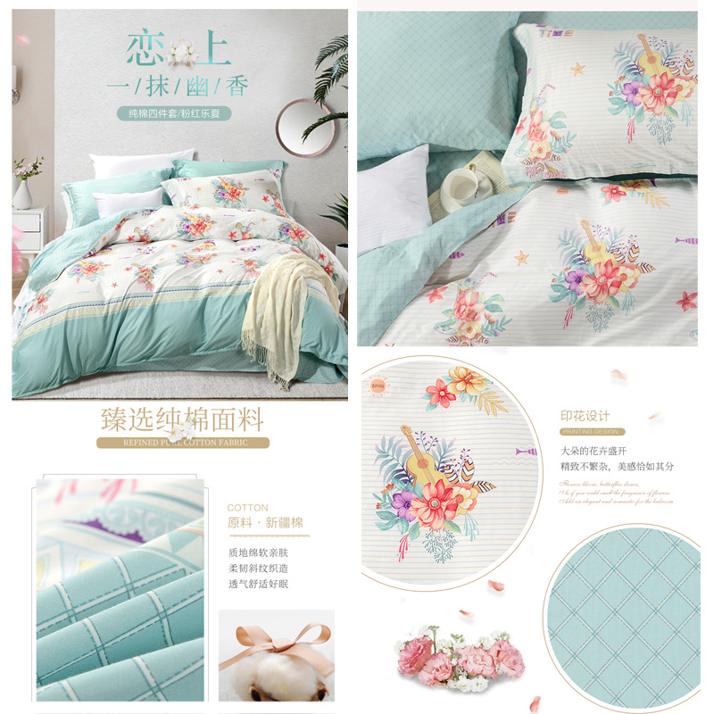 粉红乐夏 床单三件套(被套1件床单1件枕套1件)(适合1.2米床)【纯棉/蓝】 |