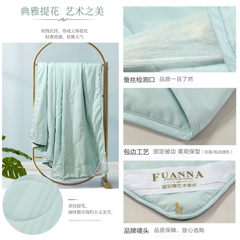 素馨负离子提花蚕丝夏被(夏被1件)(适合1.8米床)【面料:聚酯纤维;填充:柞蚕丝(中长丝绵)/绿】 |