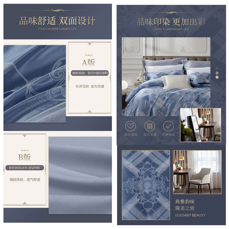 伦敦故事 床单四件套(被套1件床单1件枕套2件)(适合1.8米床)【A版:莫代尔提花;B版:纯棉/蓝】 |
