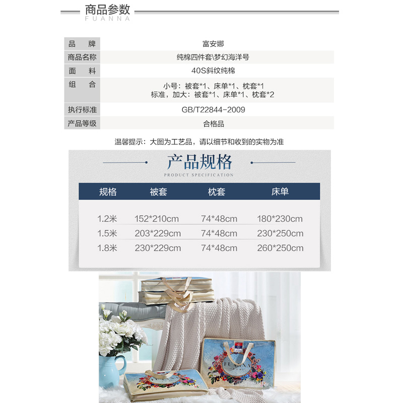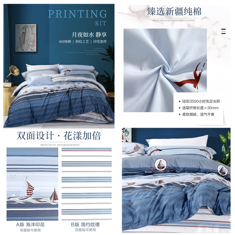 梦幻海洋号 床单四件套(被套1件床单1件枕套2件)(适合1.8米床)【纯棉/蓝】 |