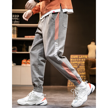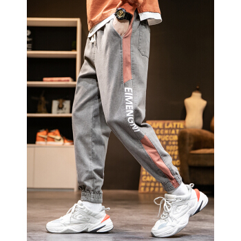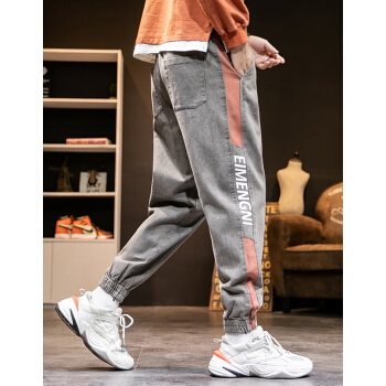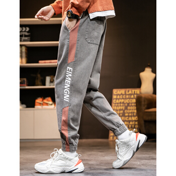 ED.HD长裤子男夏季宽松裤牛仔裤男士牛仔裤时尚潮流韩版男装休闲牛仔裤 K18灰色 XL |