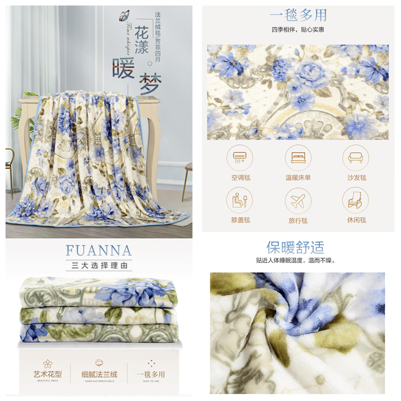 芳菲四月 法兰绒毯(毯子1件)【聚酯纤维/蓝】 |